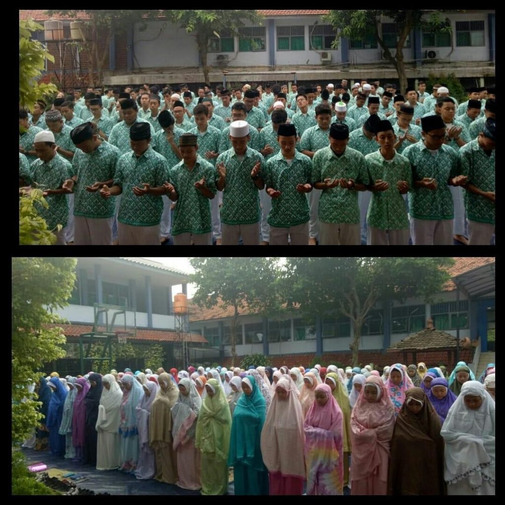 Suasana hening melingkupi pagi di halaman MAN 2 Jakarta sejak diumumkan pelaksanaan shalat ghaib. Bertindak sebagai imam adalah Ust. Zamal, S.Pd, dan dilanjutkan dengan doa bersama untuk para korban yang telah meninggal, juga untuk seluruh masyarakat Lombok agar diberikan kekuatan dan kesabaran dalam menerima musibah ini.